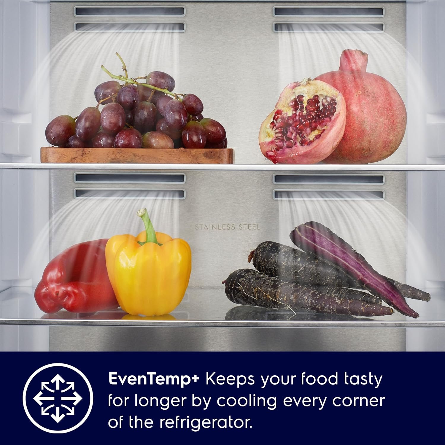 - Smart. Energy-Efficient Cooling System: Equipped with an advanced Inverter Compressor and EvenTemp multiflow technology. this refrigerator smartly adjusts its cooling performance to maintain consistent temperatures across all zones—providing energy savings. whisper-quiet operation. and longer-lasting freshness throughout.